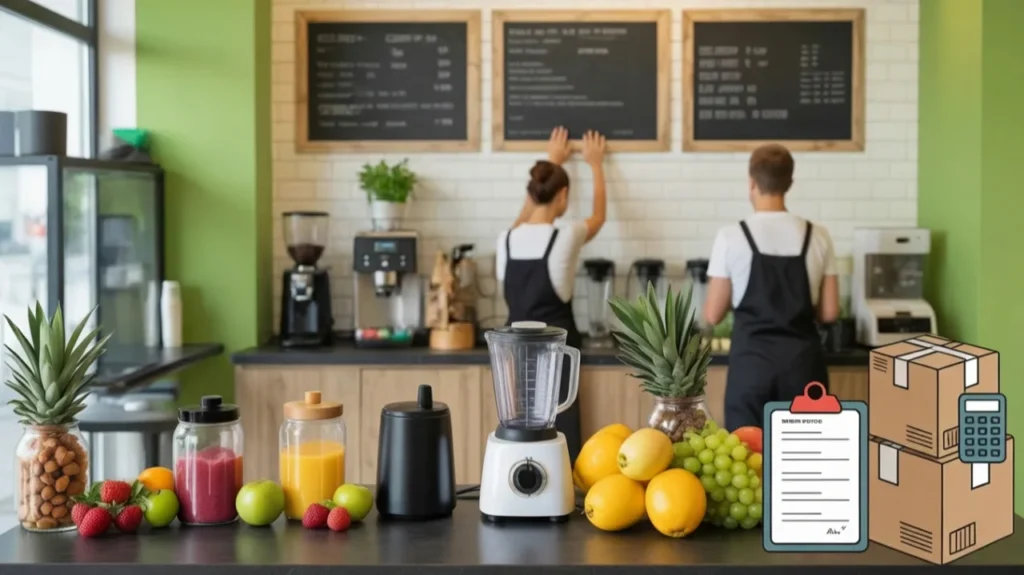 No smoothie business survives without reliable gear. In my setup, I learned the hard way that cheap blenders break under daily use, leading to downtime and lost sales. Start with essentials: high-speed blenders (2-4 units, $800-$2,000 each), commercial refrigerators/freezers ($3,000-$15,000), and juicers if you’re expanding ($1,000-$3,000). Sinks and prep stations add $2,000-$5,000 for compliance.